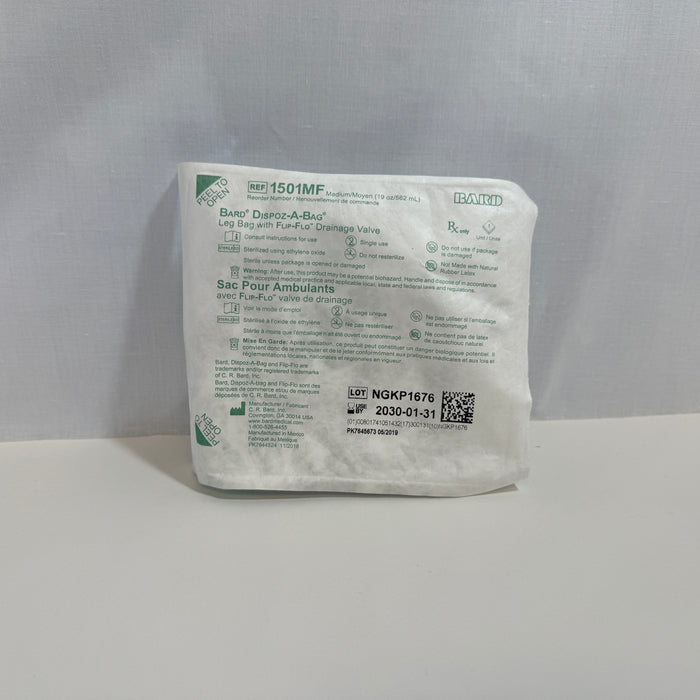 Bard Dispoz-A-Bag 1501MF - Leg Bag With Flip-Flo Drainage Valve, Medium 19 Ounch/562 Milliliters